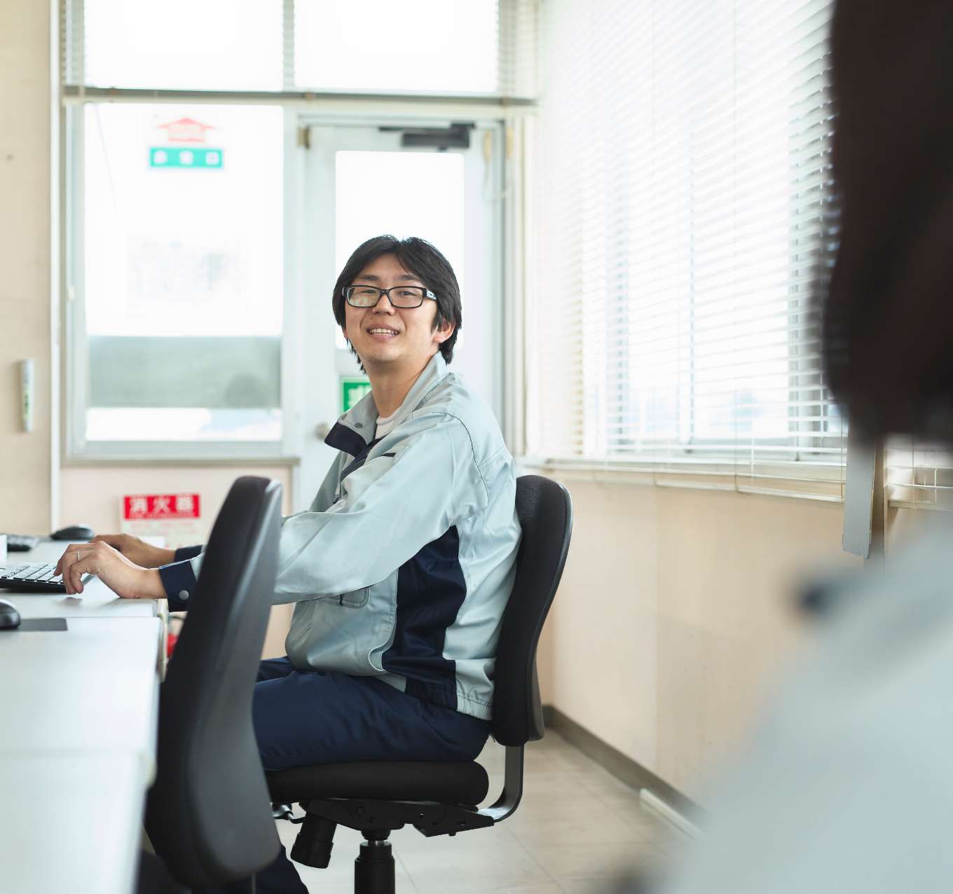 - 2012年入社。工学部機械システム工学科卒業。山形工場の生産技術担当として入社。製造ラインのあらゆる設備の設計や改良に携わっている。2019年からは約2年間にわたってタイ工場に出向していた。日本へ帰任後、休みの日はお子さんとプラレールで遊んだりしながら、家族との楽しい時間を過ごしている。大学時代はジャグリングなどの大道芸サークルに所属していた。